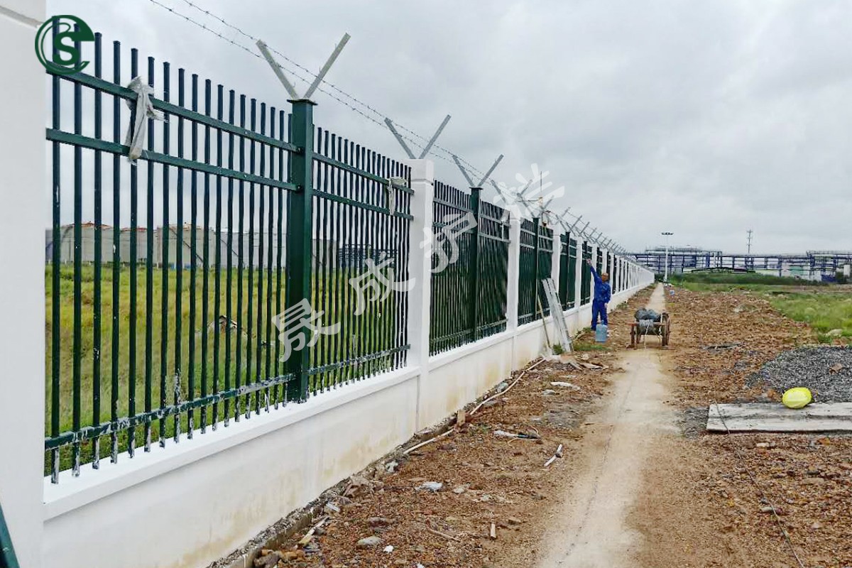 廣州晟成的生產(chǎn)銷售團(tuán)隊(duì),經(jīng)過多次的溝通洽談,圍繞廠區(qū)圍欄的安裝、制作工藝、材料材質(zhì)等等方面,進(jìn)行多次設(shè)計(jì)方案及圍欄樣板,最終獲得甲方單位的認(rèn)可。施工完成后的圍欄,在耐腐性、美觀性、安防效果、整體強(qiáng)度等方面,均順利通過了相關(guān)測試。得到甲方單位及周邊廠區(qū)業(yè)主單位的一致好評!