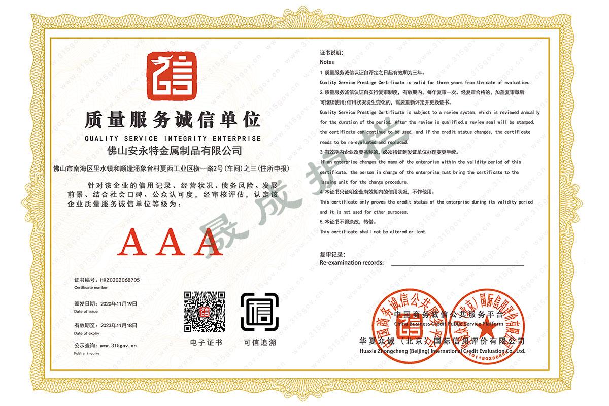 質(zhì)量證書(shū)